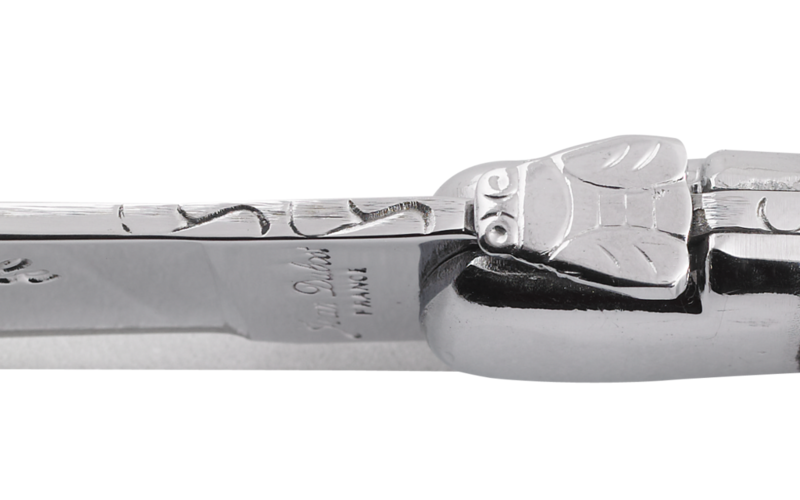 Vous avez la possibilité de faire personnaliser la lame de votre couteau de poche par gravure du texte de votre choix sur le verso de la lame. Cette personnalisation nécessite un délai de 3 à 5 jours ouvrés supplémentaires pour l'ensemble de votre commande qui sera envoyée complète en une fois.