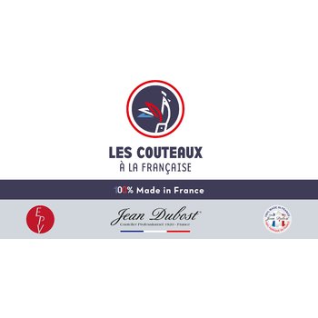 Jean Dubost vous propose sa collection Les couteaux à la française® issue de son savoir-faire français centenaire. Une lame en acier français de heute qualité, un manche en bois de hêtre issu des forêts française et une fabrication 100% dans nos ateliers près de Thiers : la garantie d'un circuit court et de préservation de l'emploi local. Saviez-vous que bon nombre de nos collaborateurs travaillent dans nos ateliers de père en fils et de mère en fille ?
