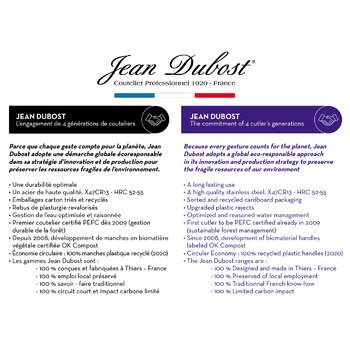 Donnez un air arty à votre table : à la fois tendance et responsables ces couteaux ont tous les atouts. Leur manche est fabriqué à partir de déchets plastique collectés en France et recyclés en France pour donner naissance à un matériau innovant 100% éco-conçu. Notre savoir-faire coutelier centenaire fait le reste !