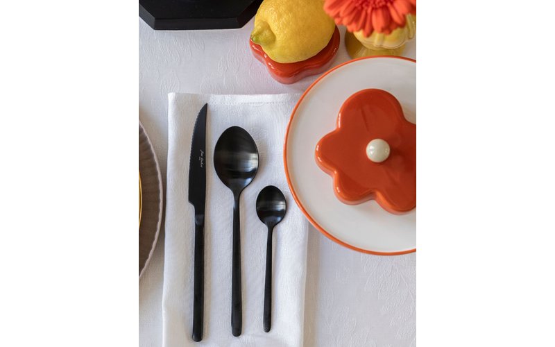 Chics, tendances et élégants, les couverts Anuradha black Jean Dubost, largement plébiscités par la presse, sont du plus bel effet pour mettre en valeur tout style de vaisselle ou bien pour dresser votre table façon black and white : couverts noirs et vaisselle blanc pur !