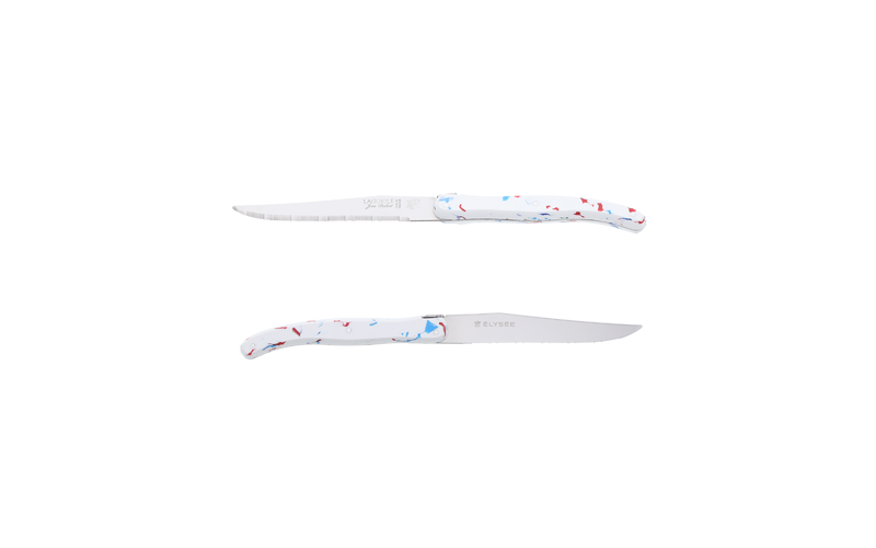 - Avec couteau Jean Dubost Laguiole® Sense bleu, blanc, rouge fabriqué à partir de déchets plastiques collectés et recyclés en France, Le Pavé